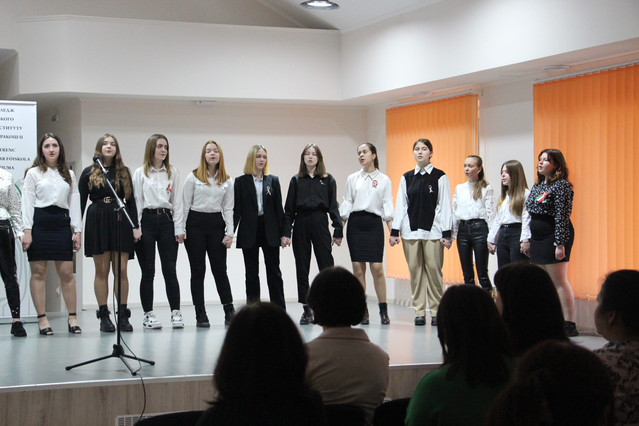 A kollégisták Varga Dancs Marianna tanárnő felkészítésében a Magyar vagyok c. számot adták elő zenés kísérettel.
