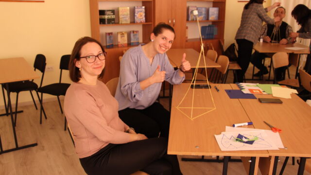 A Volinyi Pedagógustovábbképző Intézet Pedagógia és Pszichológia Tanszékének docense, a pedagógiai tudományok doktora, Nelya Kinakh dolgozta ki és vezette a tréninget. Megismertette a résztvevőket a design-gondolkodás alapvető fogalmaival, eszköztárával, hogyan lehet azt alkalmazni a szakoktatói vagy az általános pedagógiai tevékenység során. Példákon mutatta be, hogyan változtatja, alakítja színesebbé a design-gondolkodás az oktatási rendszert, gyakorlatban szemléltetett több innovatív technológiát. Az általa alkalmazott eszköztár segítségével hatékony tanulási környezetet lehet kialakítani, segít felkelteni a tanulókban az érdeklődést új dolgok megismerése iránt, ösztönöz az alkotói tevékenységre, támogatja a találékonyságot.