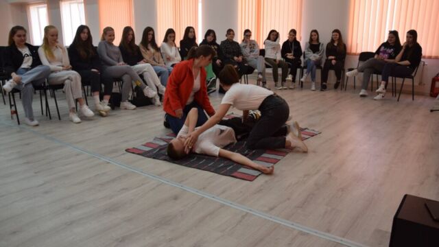 Az óra részeként a hallgatók gyakorlati készségeket sajátítottak el a sebesült személy állapotának előzetes felmérése, a mentőszolgálat értesítése, valamint a sebesült testhelyzetének rögzítéséhez, légzésének és szívritmusának érzékeléséhez, a sebesült újraélesztéséhez szükséges elsőbbségi intézkedések elsajátítása terén. Minden diák lehetőséget kapott arra, hogy kipróbálja magát az életmentő szerepében. A diákok elsősorban a közvetett szívmasszázs helyes technikáját, a sebek szakszerű ellátását és a sebesültek ölben szállításának különböző módszereit sajátíthatták el. Ezenkívül mindannyian gyakorolhatták a fuldoklás és más kritikus helyzetek bekövetkeztekor végrehajtandó helyes cselekedetek algoritmusát.