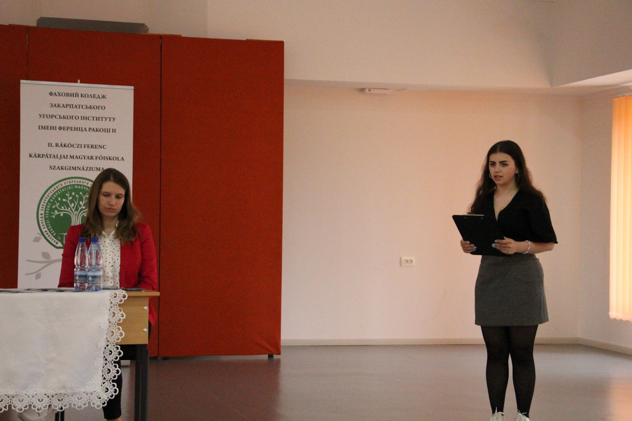 Turóczy Bianka, III. évfolyamos, szociális munka szakos hallgató a Diákönkormányzat nevében köszöntötte a látogatókat, valamint kifejtette, miért is érdemes az intézményt választani, a tanulás mellett milyen szabadidős tevékenységek várhatnak rájuk.