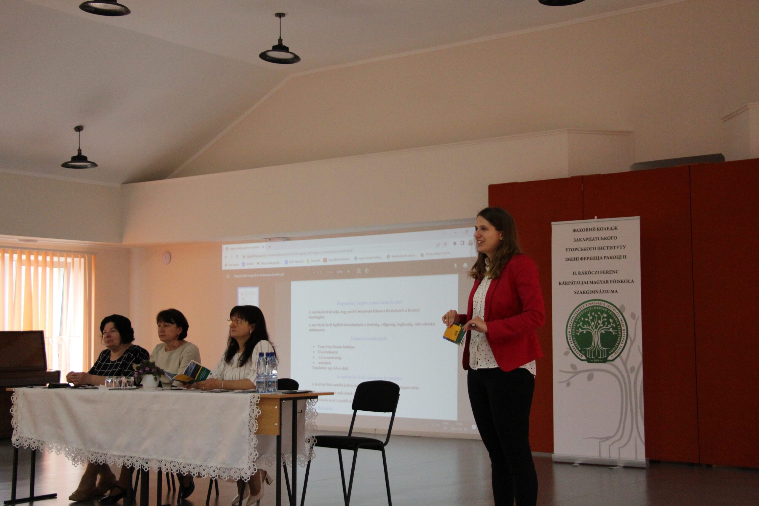 Knobloch Erzsébet, a Szakgimnázium Felvételi Bizottságának titkára ismertette a legfontosabb tudnivalókat a felvételivel kapcsolatban. A felvételi időszak június 23‐tól július 13‐ig tart. A jelentkezés feltétele idén is egy motivációs levél ukrán és magyar nyelven. A jelentkező egyidejűleg több szakot is megjelölhet.