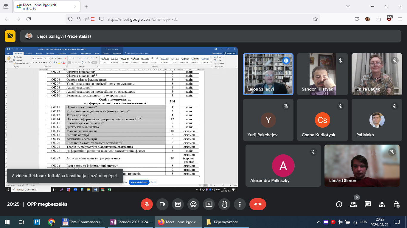 Több kulcsfontosságú kérdést is tárgyaltunk, többek között elemeztük a szaktárgyak tartalmi részét, azok aktualitását, a képzés gyakorlati irányultságát, a kutatói tevékenység szervezését, a gyakorlatok rendszerét és korszerű tanítási módszerek és technológiák bevezetését. A résztvevők megosztották gondolataikat és ötleteiket, megvitattuk a jövőbeli szakemberek képzésének leginkább hatékony módjait.
