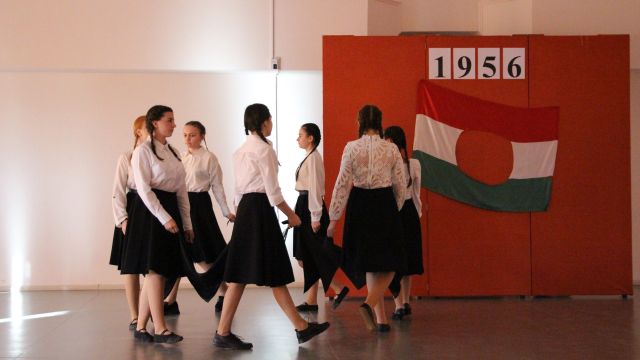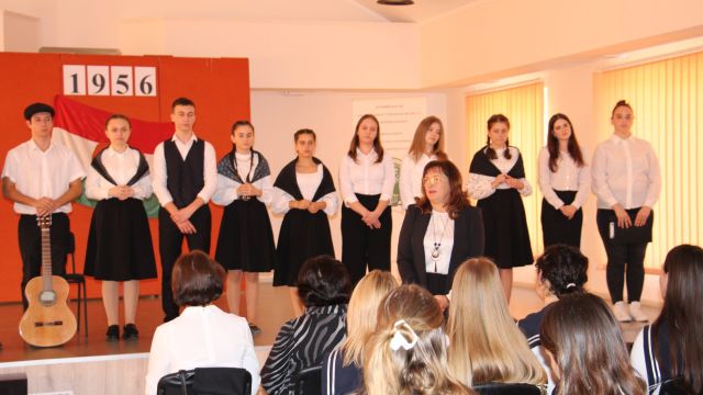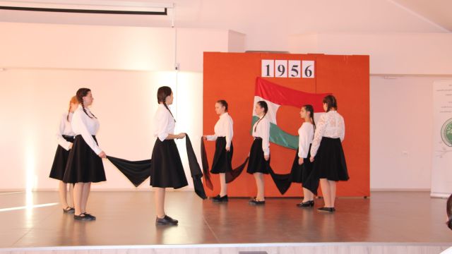 Az idei megemlékezésre is nagy lelkesedéssel készültek az intézet diákjai, akik színvonalas műsorral tisztelegtek az 1956-os események előtt. A rendezvény kezdetén Gerendely Béla történelemtanár idézte fel a forradalmat kiváltó okokat, valamint a történelmi esemény jelentőségét. A diákok felemelő szavalatokkal idézték fel a forradalom szellemiségét, amely a szabadságvágyat, az igazságot és a függetlenség iránti elkötelezettséget hirdeti. A verses-zenés összeállítást színesítette a Kopasz Vivien Kitti táncszakkör vezető által betanult koreográfia.