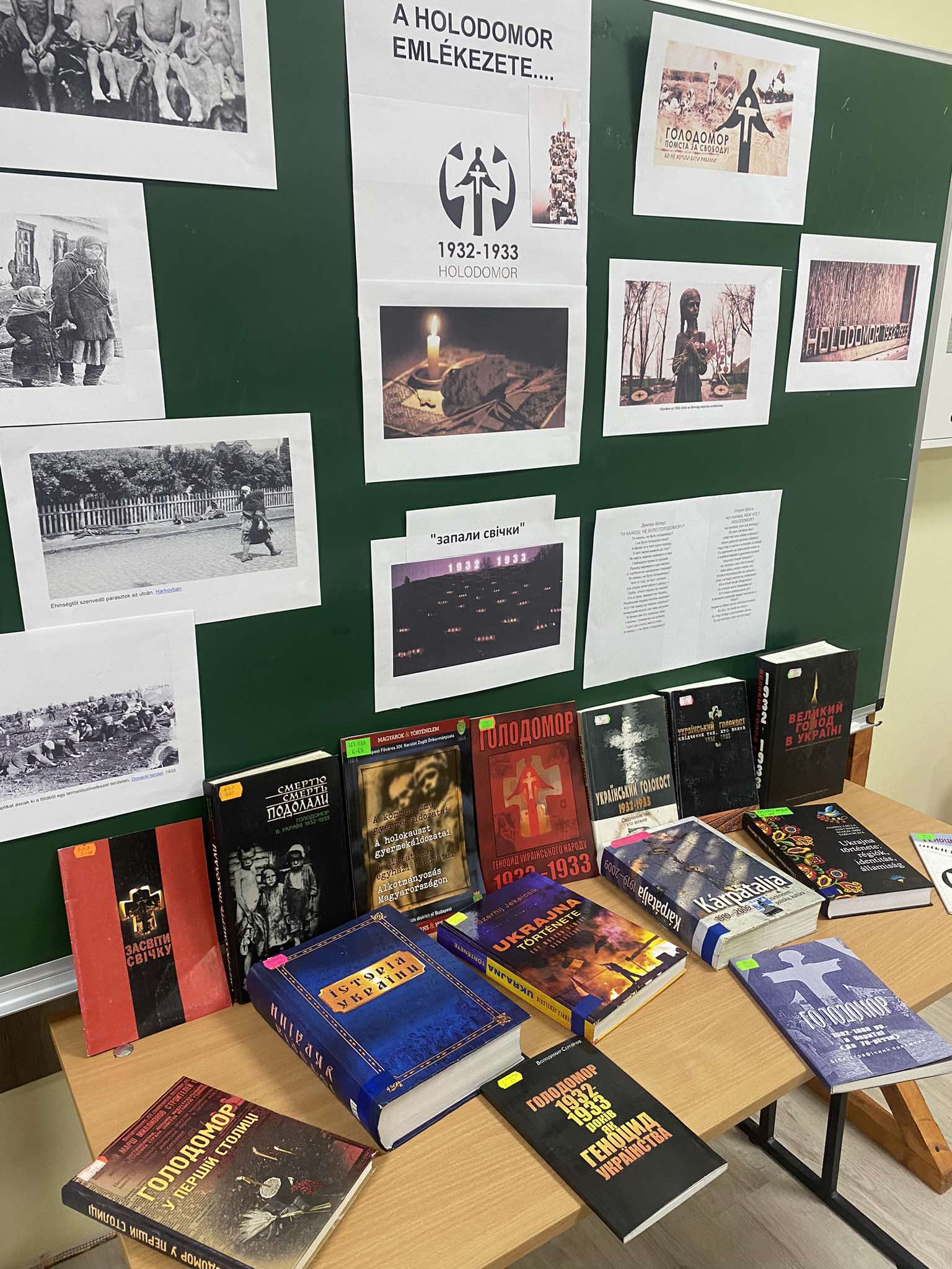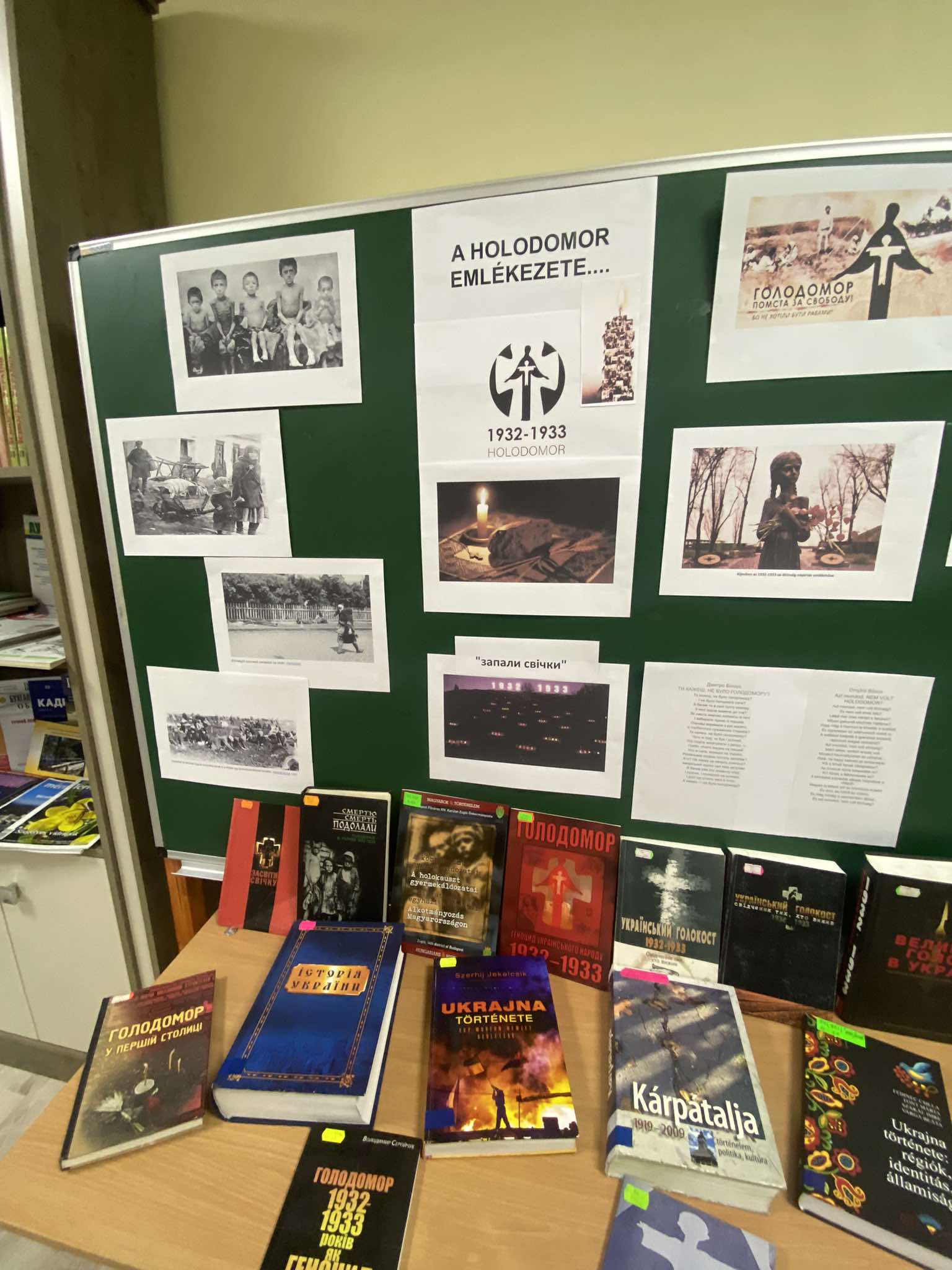 A Holodomor emléke előtt tisztelegve az Apáczai Csere János Könyvtár Felsőfokú Szakképzési Intézetét kiszolgáló multifunkciós fiókkönyvtárában „Gyújts egy gyertyát” címmel fénykép és könyvkiállítást szerveztek az emléknap tiszteletére.