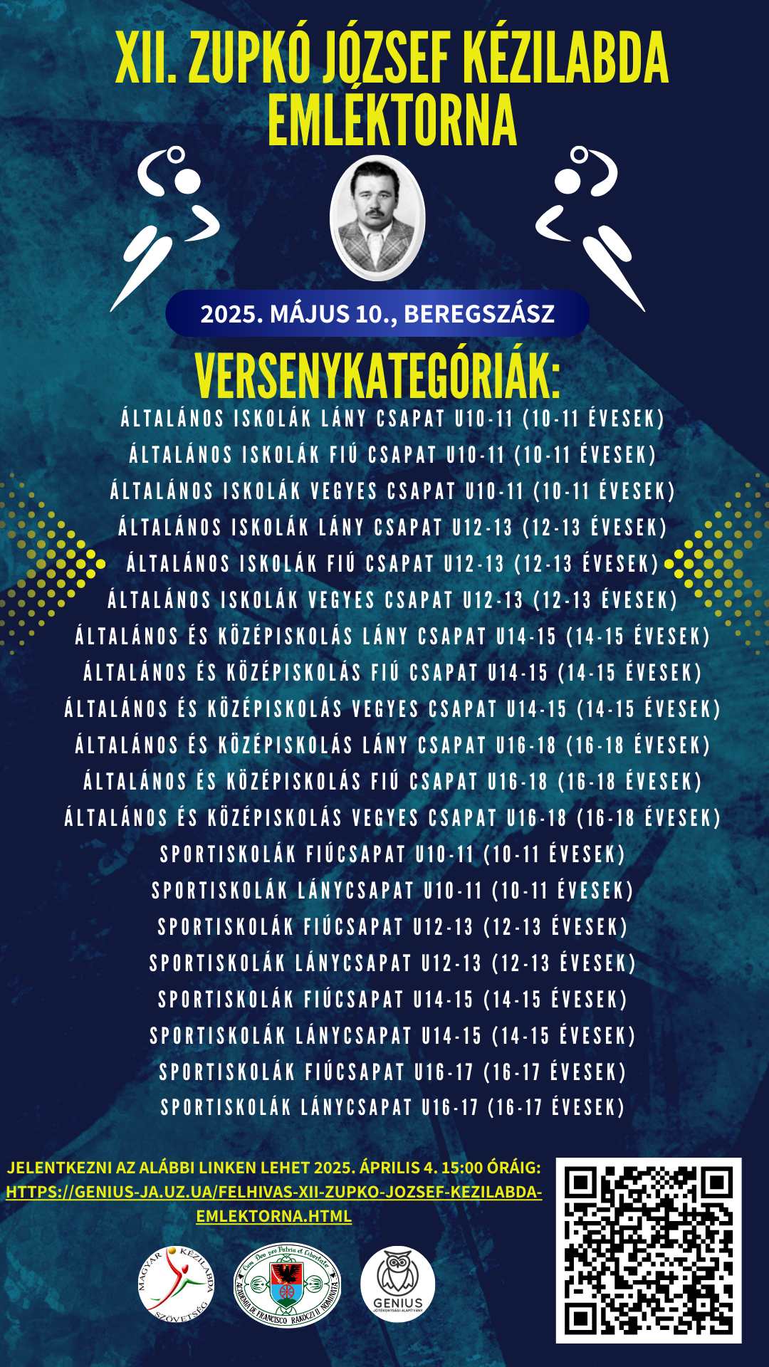 A „GENIUS” Jótékonysági Alapítvány a 2024/2025-ös tanévben tizenkettedik alkalommal valósítja meg a Zupkó József Kézilabda Emléktornát.