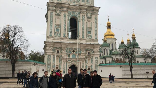 teret (a Májdánt, ahol a 2014-es forradalmi események zajlottak), a Hrescsátikot, az Európa teret, a Gábriel arkangyalos diadaloszlopot… talán az olvasónak is hosszú már a felsorolás is. De az AlkMat egy mindent túlélő, igazán hősies csapattest volt, akik becsülettel végigcsinálták ezt „menetet”. Nem maradhatott ki a legnagyobb McDonalds sem. És az estébe még ezután belefért egy kiadós séta az impozáns Sevcsenkó parkban, a Sevcsenkó Egyetem vörös épületének körbejárása, a régi Parlament, és vidám beszélgetések a nagyváros fényei megvilágításában.
