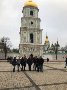 Ezek után még egy gyors gyalogtúra keretében az Arany Kaputól indulva felfedeztük az ősi fejedelmi Szófia székesegyházat, aztán a Bohdan Hmelnyickij lovas szobra mellett elhaladva még a szovjetek által lerombolt, de újjáépített aranykupolás Szent Mihály-templom belsőudvarát, hatalmas épületegyüttesét is megnézhettük.