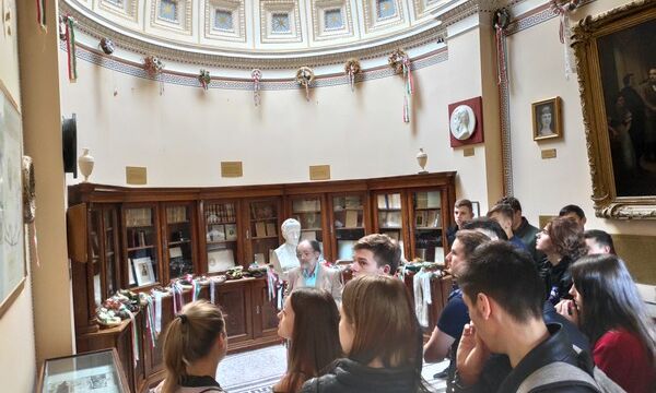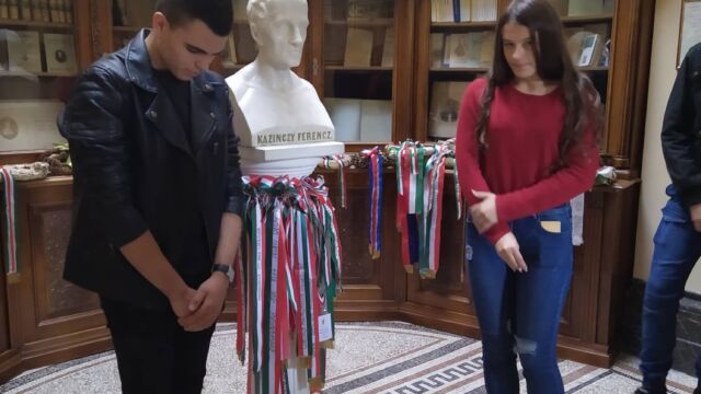 agyar nyelv és irodalom nagyjai. A múzeum a retrospekció és az interakció tökéletes ötvözete volt. Egyszerre tanulhattunk játszva és tekinthettük meg a régi kéziratokat is. Ugyanígy betekintést nyerhettünk a „Toldi” cselekményvilágába is, szobrok, tárgyak, illusztrációk segítsége által. Ezután a Kazinczy Ferenc mauzóleumában végig tekinthettünk Kazinczy életének legfőbb megállóit. Megtudhattuk a családja történetének érdekességeit, különlegességeit. Ezután tiszteletünket kifejezve megkoszorúztuk a mellszobrát és a síremléké
