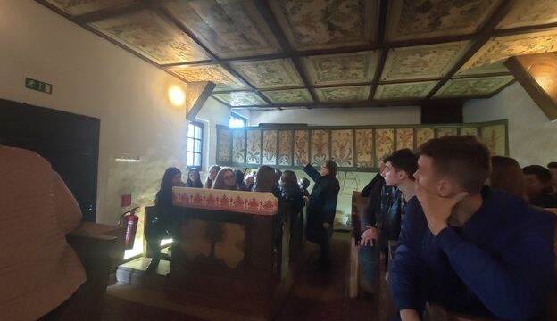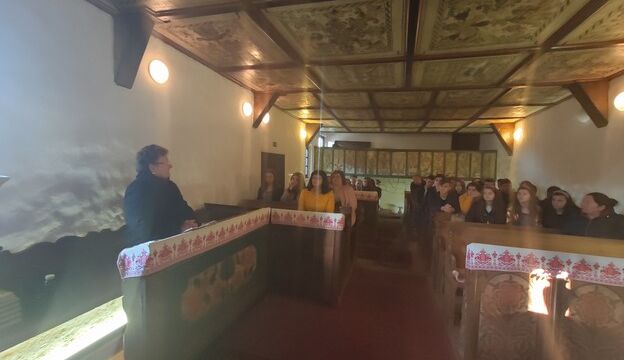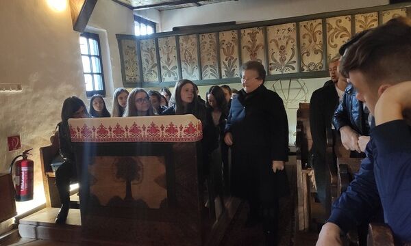 évekbeli fakazettás mennyezetű templomot tekinthettünk meg, melynek a „testvére” Csetfalván található. Megtudtuk, hogy a mennyezetbeli kazettáknak saját jelentésük van, mivel mindegyik különböző motívummal van díszítve, és a csillagjegyek is megtalálhatóak rajtuk.