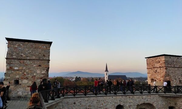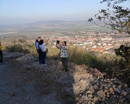 Ezután egyedülálló látványosságban volt részünk. A Sátoraljaújhely felett magasodó Szár-hegyen kialakított Magyar Kálvária volt a következő célpontunk, melynek stációi a trianoni békeszerződés során elszakított 38 város nevét és címerét jelenítik meg. A hegy tetejére érve a Szentkoronát formázó Szent István-kápolnát vehettük szemügyre és a 100. Országzászlót. A kilátás pedig egyszerűen lenyűgözött mindenkit.