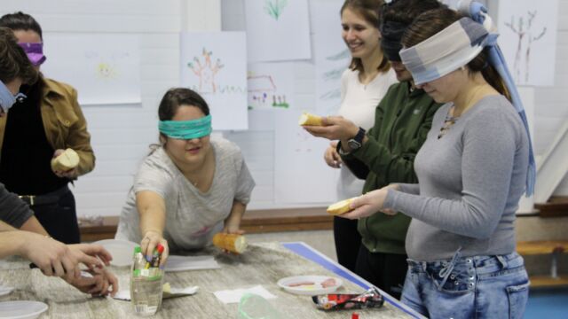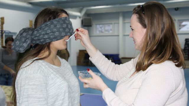 A következő állomáson kipróbálhattuk milyen, ha csak egy adott érzékszervükre támaszkodhatunk: próbára volt téve ízlelésünk, tapintásunk és hallásunk is.