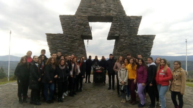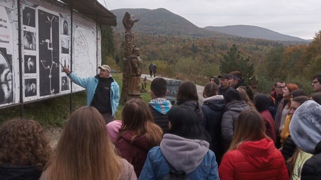 Első megállónk a Szolyvai Emlékpark volt, ahol az 1944. novemberi Malenykij robot áldozatai előtt róhattuk le tiszteletünket. Itt rövid megemlékezés során koszorút helyeztünk el az áldozatok neveit felsoroló emléktáblák előtt.