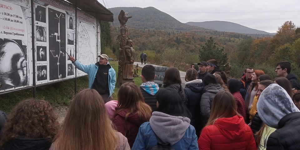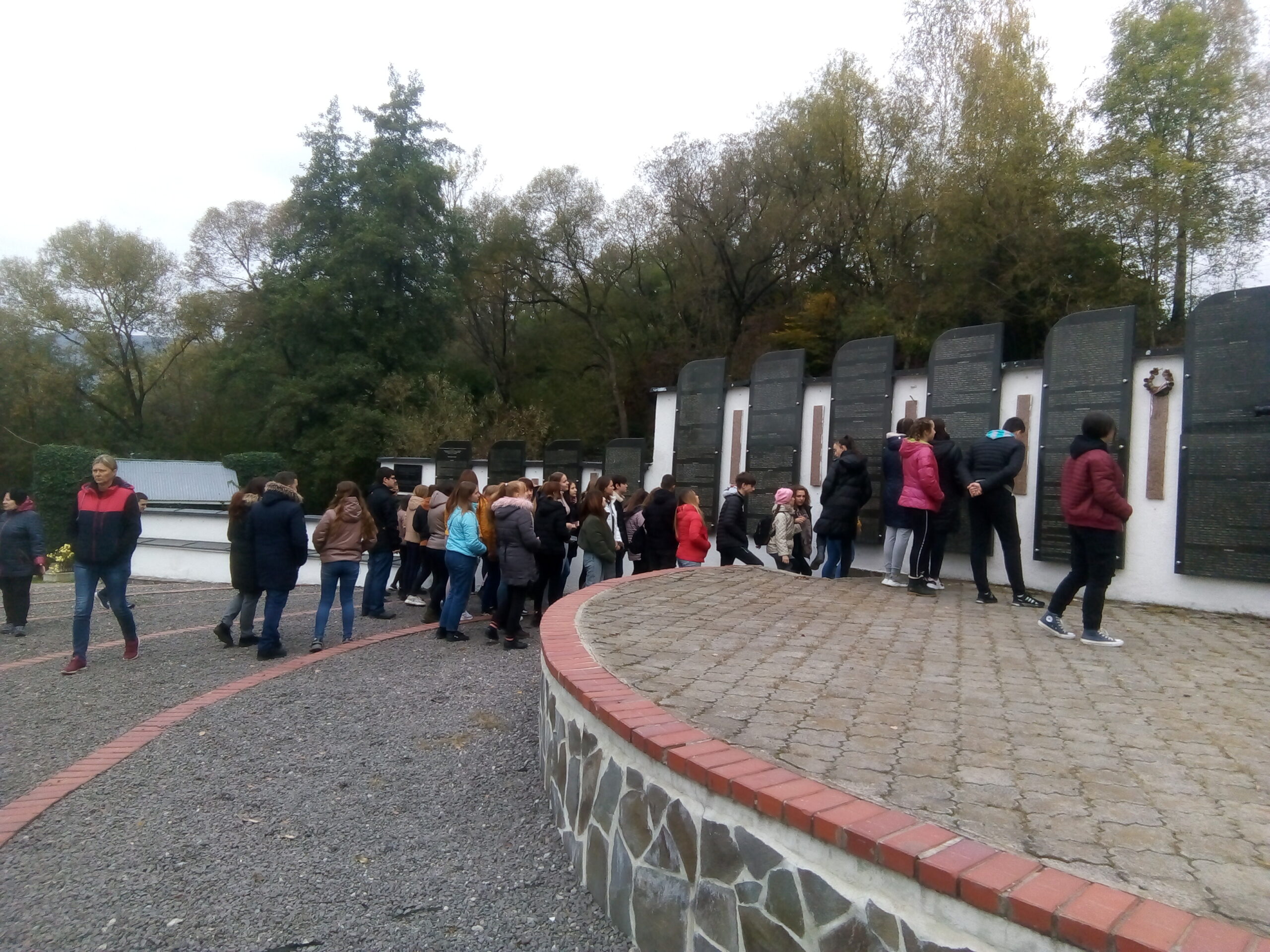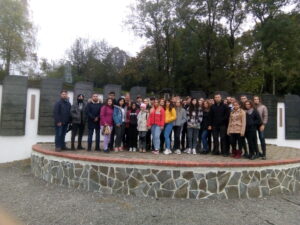 Első megállónk a Szolyvai Emlékpark volt, ahol az 1944. novemberi Malenykij robot áldozatai előtt róhattuk le tiszteletünket. Itt rövid megemlékezés során koszorút helyeztünk el az áldozatok neveit felsoroló emléktáblák előtt.