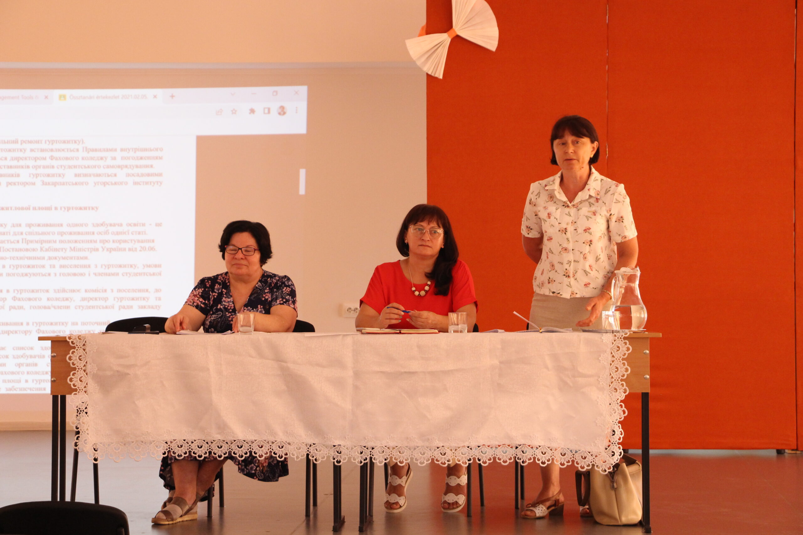 2022.augusztus 29-én került sor a II. Rákóczi Ferenc Kárpátaljai Magyar Főiskola Szakgimnáziumában a soron következő pedagógiai értekezletre. A tankollektívát elsőként Soós Katalin igazgató tájékoztatta a 2022/2023-as tanév előtt álló feladatokról. Dzsanda Galina igazgatóhelyettes és Sas László gazdasági felelős ismertette a munkavédelmi és a rendkívüli helyzetekre vonatkozó szabályokat a Szakgimnázium tanáraival, nevelőivel.