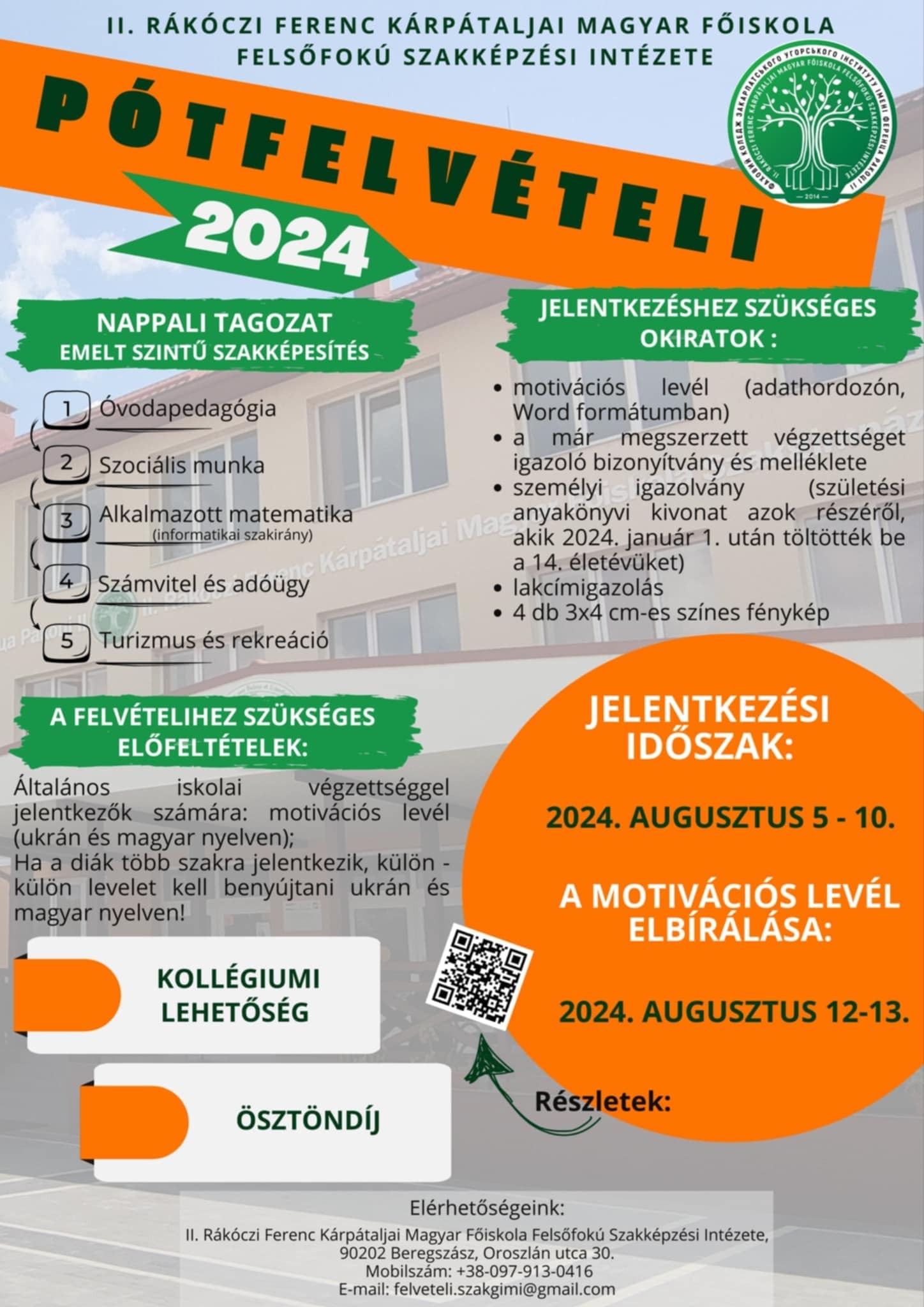 - A II. RÁKÓCZI FERENC KÁRPÁTALJAI MAGYAR FŐISKOLA FELSŐFOKÚ SZAKKÉPZÉSI INTÉZETÉNEK 2024. ÉVI FELVÉTELI SZABÁLYZATA