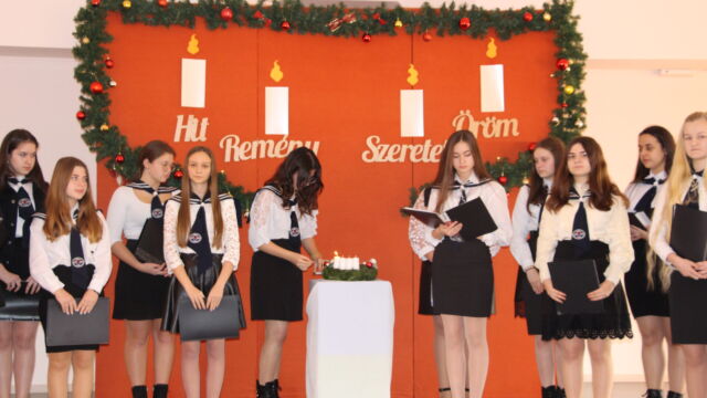 Після першої неділі Адвенту, у понеділок 28 листопада 2022 р. у Фаховому коледжі Закарпатського угорського інституту запалили свічку Віри, першу свічку Адвенту.