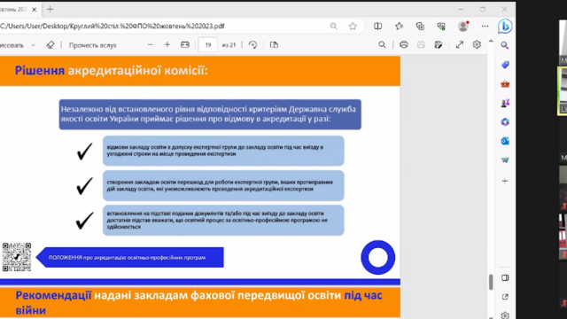 14.30-15.00 Актуальні питання акредитації освітньо-професійних програм закладів фахової передвищої освіти