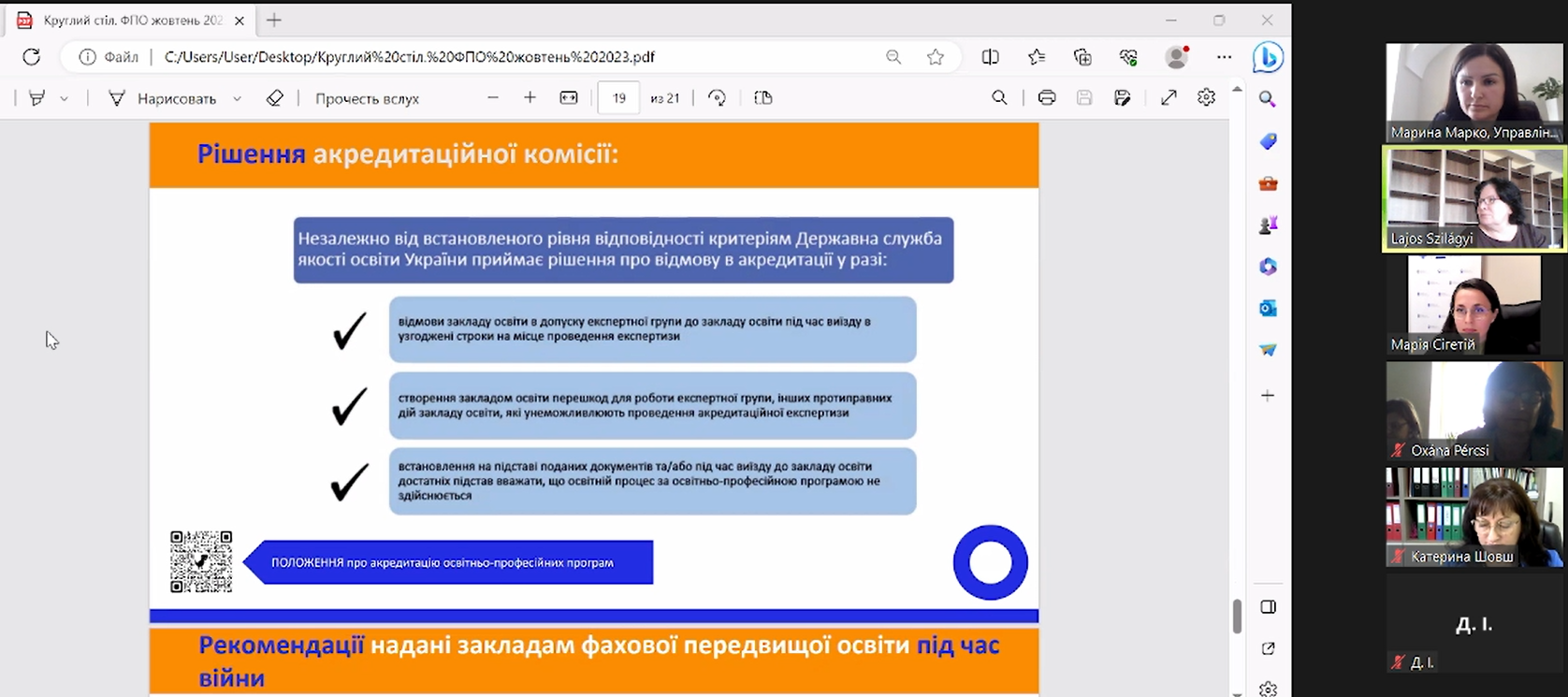 14.30-15.00 Актуальні питання акредитації освітньо-професійних програм закладів фахової передвищої освіти