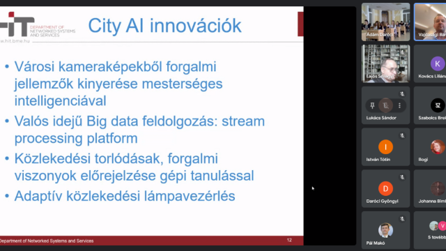 Слухачі лекції ознайомилися з унікальним проєктом, який розроблений з метою реалізації керування транспортним рухом у великих містах. Багатомодульний програмний засіб, що базується на штучному інтелекті і над яким постійно працює дослідницька група університету, вже успішно був застосований у м. Печ (Угорщина), і зараз проходить його імплементація в одному з районів Стамбула (Туреччина).
