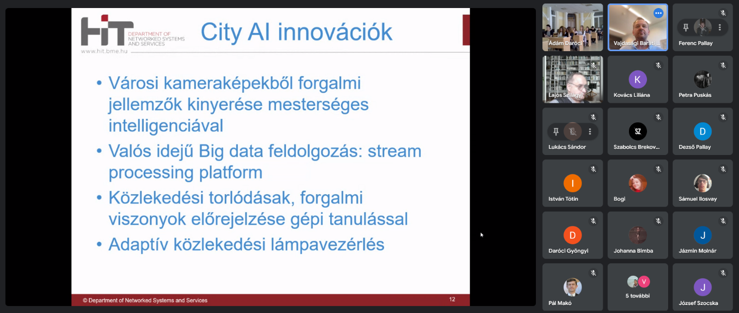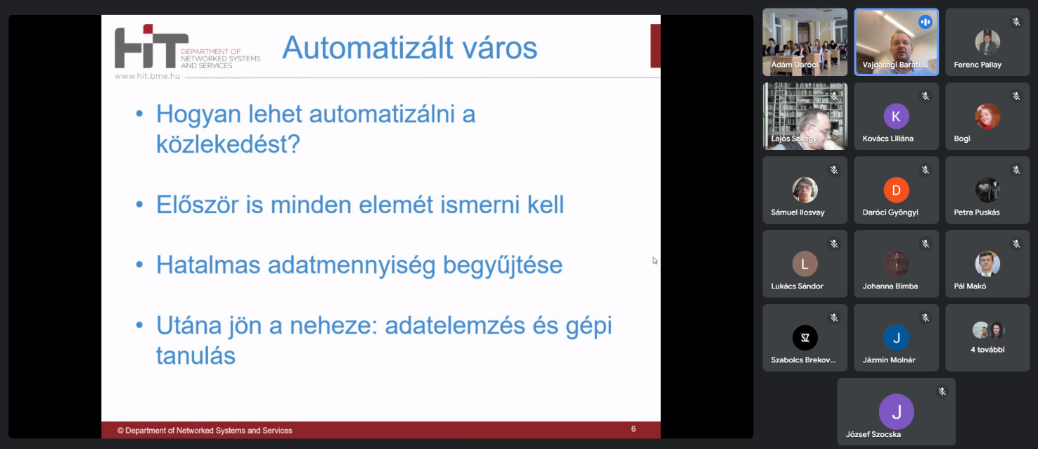 Слухачі лекції ознайомилися з унікальним проєктом, який розроблений з метою реалізації керування транспортним рухом у великих містах. Багатомодульний програмний засіб, що базується на штучному інтелекті і над яким постійно працює дослідницька група університету, вже успішно був застосований у м. Печ (Угорщина), і зараз проходить його імплементація в одному з районів Стамбула (Туреччина).