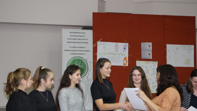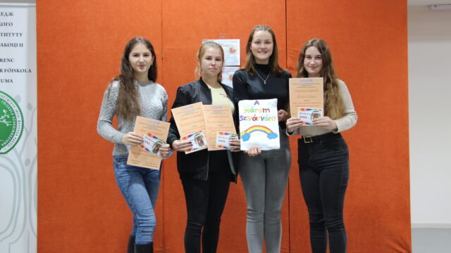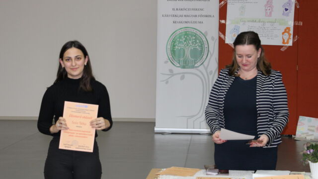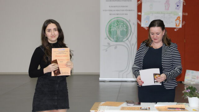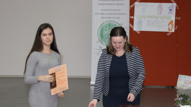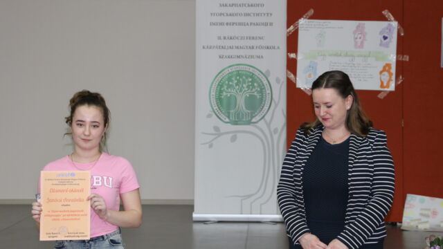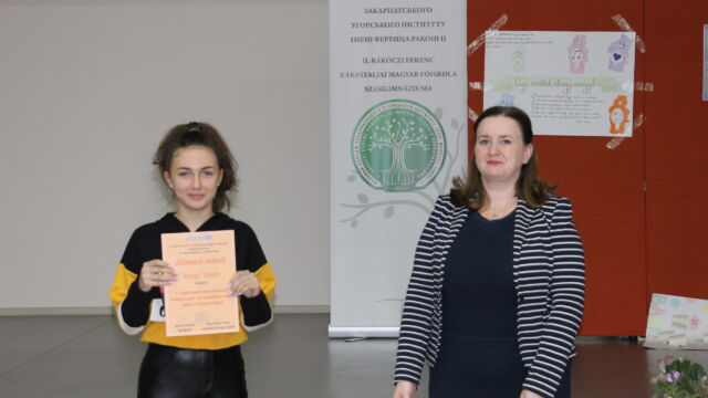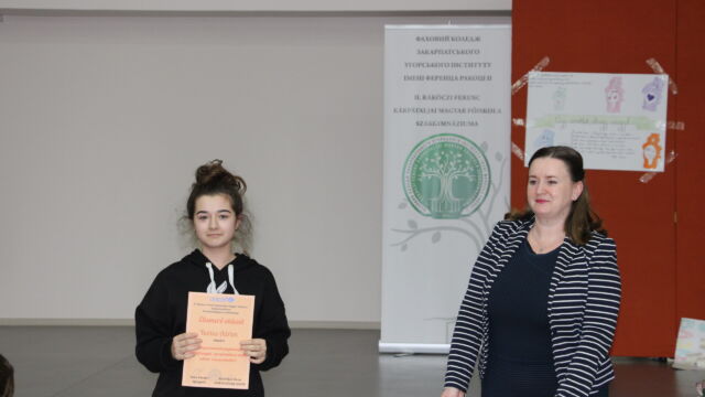 У номінації «Мовні творчі роботи» найкращою стала Дебрей Габріелла, студентка ІІ курсу, а майбутні випускниці, Оршоя Кедебец та Крістіна Сабо, отримали спеціальні призи за розповіді дітям про їхні права у віршованій формі.